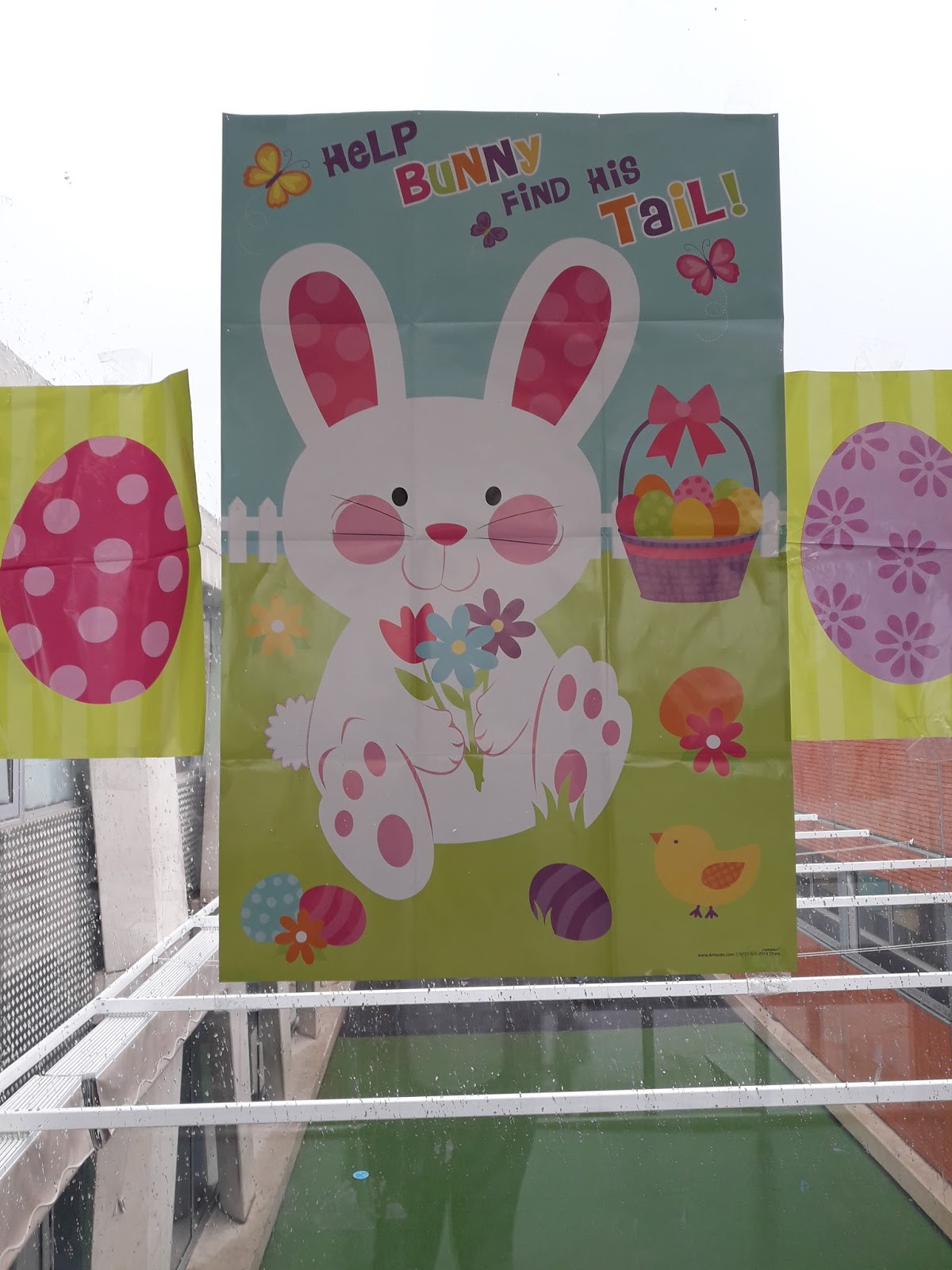 Hoy nos hemos ido de caza. Pero no os asustéis, hemos participado en la caza de los huevos de pascua que el conejito había dejado en el cole.